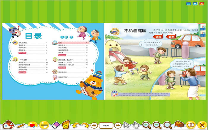 該電子書(shū)軟件包含小、中、大、幼小銜接各年齡段的安全教育(下),該電子書(shū)軟件是根據(jù)書(shū)本內(nèi)容,制作了卡通動(dòng)畫(huà)、音頻、圖片等各種配套資源,精美實(shí)用。