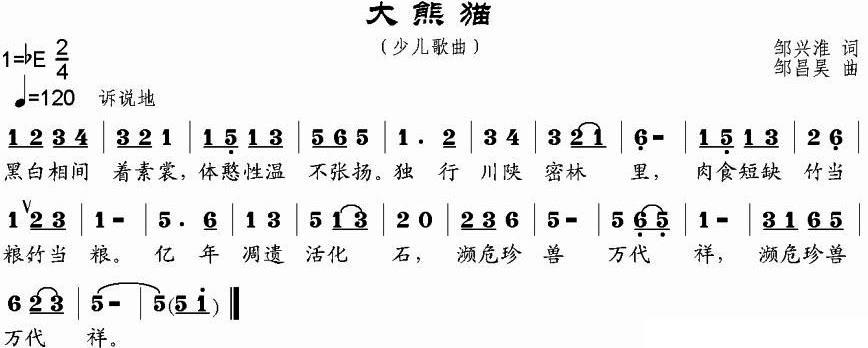 【大熊貓(鄒興淮詞 鄒昌昊曲)】相關(guān)文章: