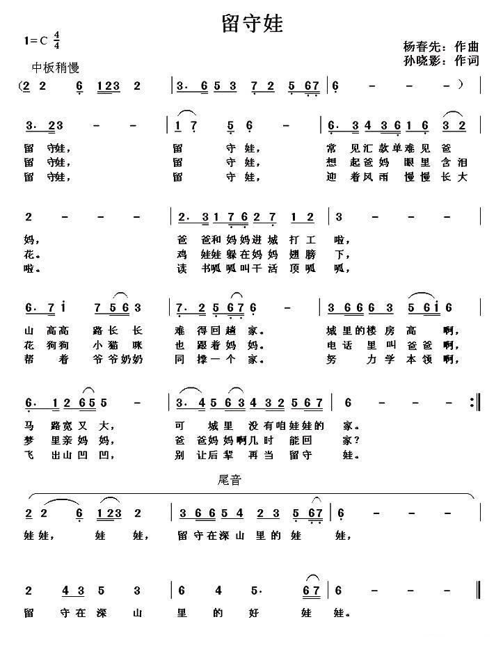【留守娃(楊春光詞 孫曉影曲)】相關文章: