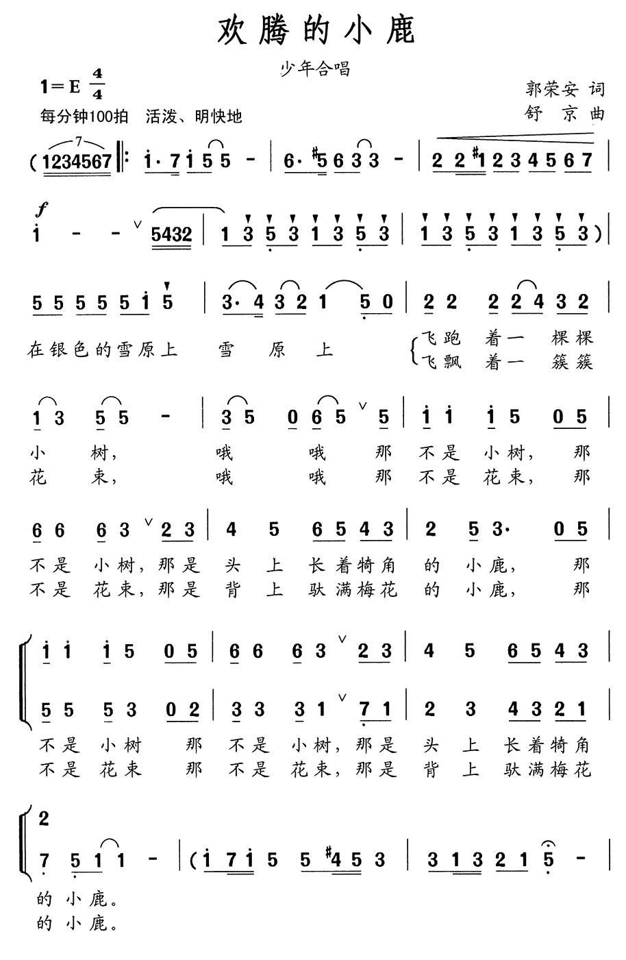 【歡騰的小鹿(郭榮安詞 舒京曲、少年合唱)】相關文章: