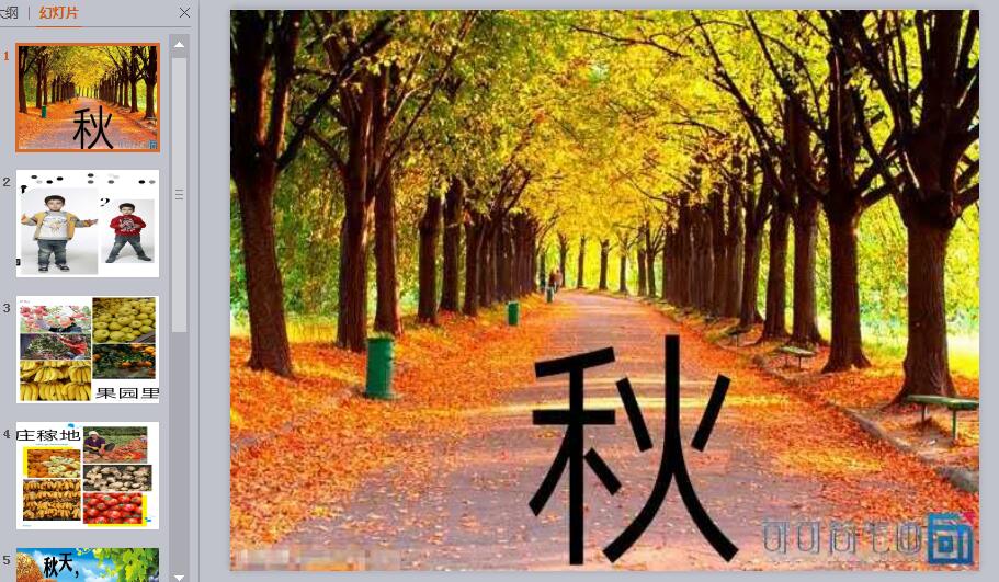2.剛才客人老師幫我們把我們找到的秋天拍成了照片,我們一起去看一看。(觀看ppt講述。)